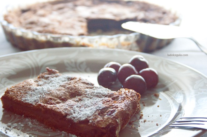 Este postre forma parte de las aventuras de : «Tengo algo que gastar,voy a ver qué puedo hacer» . Tenía unas cerezas y quería hacer algo nuevo con ellas. Indagando entre mis libros de cocina di con esta receta de «Clafoutis» que nunca lo había probado. Resulta ser una tarta francesa que tradicionalmente se realiza con cereza y una especie de masa y que se toma caliente.