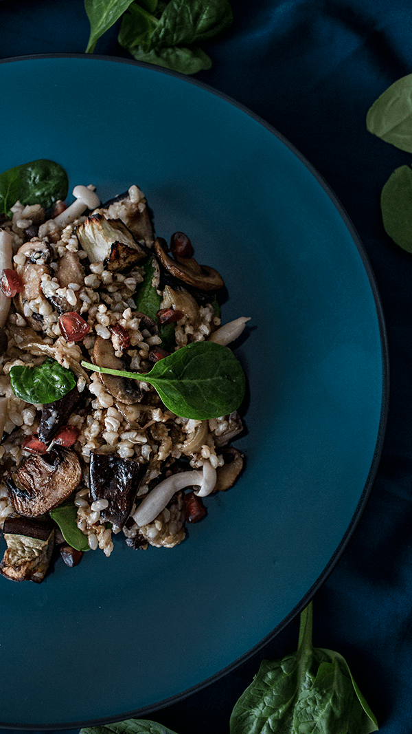 3. Lavamos la mezcla de cereales y cocemos en abundante agua salada. También cocemos unos minutos las setas shimeji.