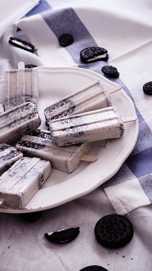 1. Ponemos en el robot de cocina o la thermomix todos los ingredientes y 4 galletas oreo. Trituramos. Si lo hacemos en thermomix 5 seg./vel.5.