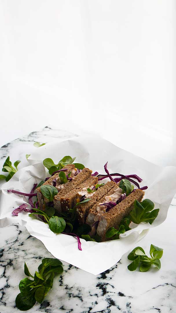 2. Agregamos al pan y añadimos canónigos y lombarda al gusto.