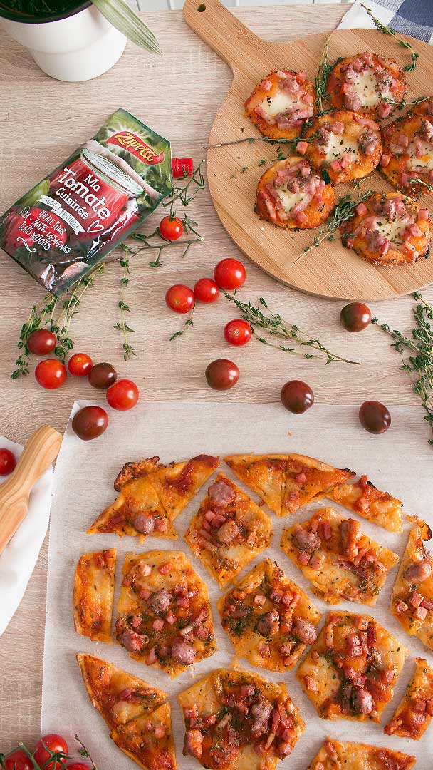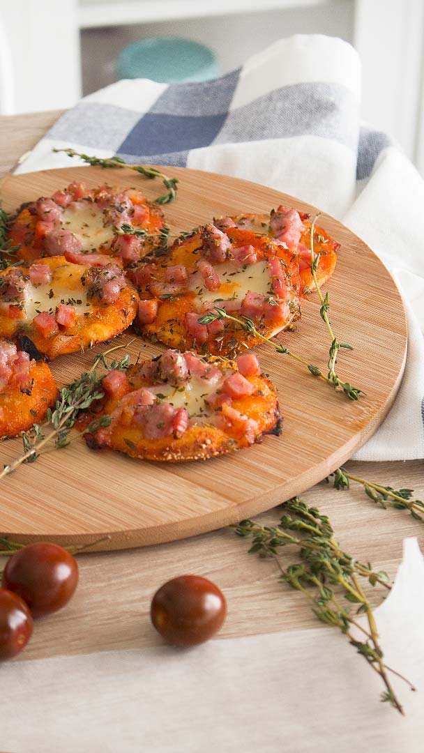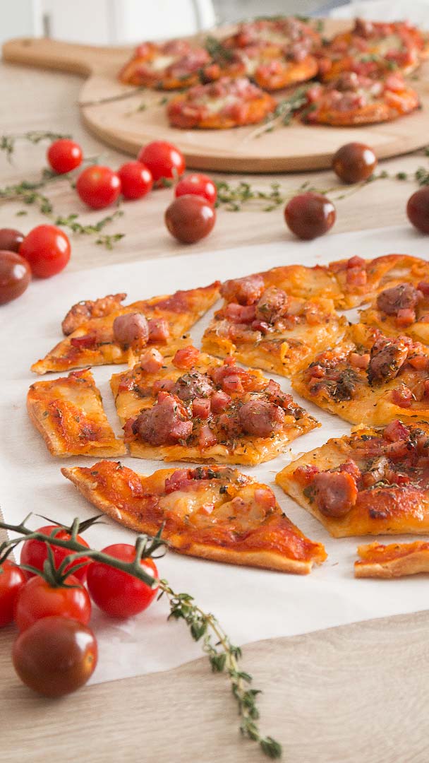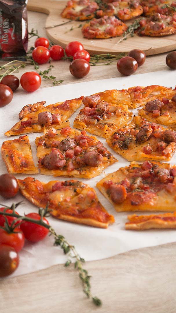 7. Partimos la pizza en forma de balón (opcional), también podemos hacer mini pizzas como veis en la foto.