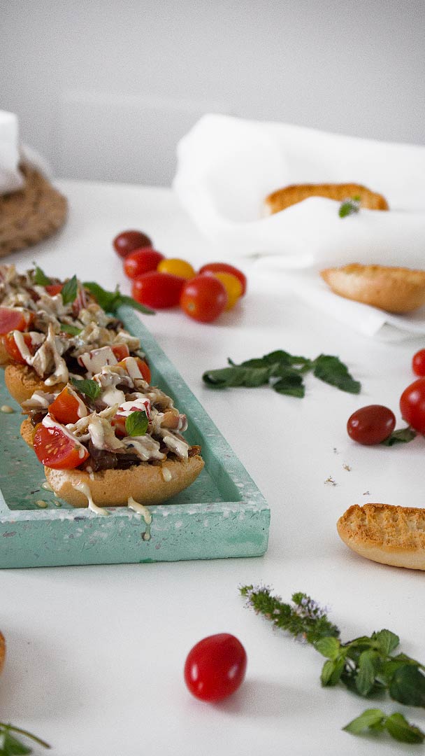 6. Formamos las hamburguesas colocando un panecillo, untamos pesto de zanahoria, colocamos la hamburguesa, añadimos la rúcula, las nueces tostadas y finalizamos con la otra tapa del panecillo untada también con pesto.