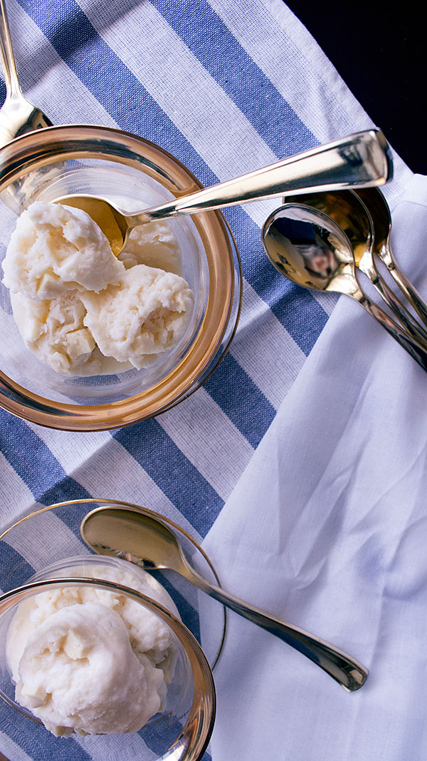 Una vez fría la crema, la batimos hasta casi montar e introducimos en el congelador en un recipiente de plástico. Sacaremos y batiremos primero a la hora y luego dos veces más cada dos horas.