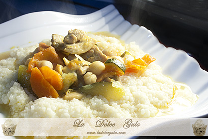 La receta la he variado un poco,no nos gusta mucho el picante y otras cositas también las he modificado. Lo hice con «Cuscús» de una marca de pastas muy conocida y no con el original por lo que varía la forma de prepararlo, además yo no cuento con una cuscusera para prepararlo tal y como lo hacen tradicionalmente.